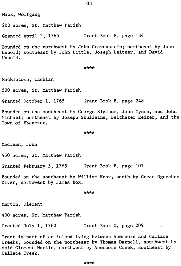 English Crown Grants in St. Matthew Parish in Georgia, 1755 - 1775