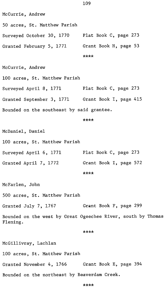 English Crown Grants in St. Matthew Parish in Georgia, 1755 - 1775