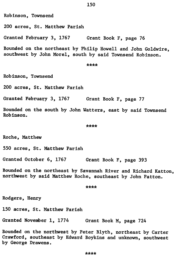 English Crown Grants in St. Matthew Parish in Georgia, 1755 - 1775
