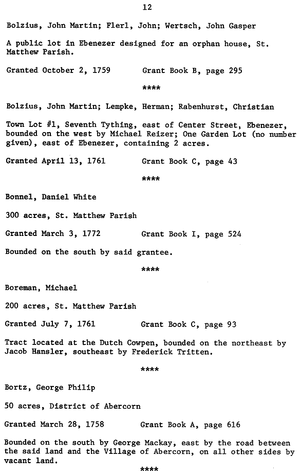 English Crown Grants in St. Matthew Parish in Georgia, 1755 - 1775