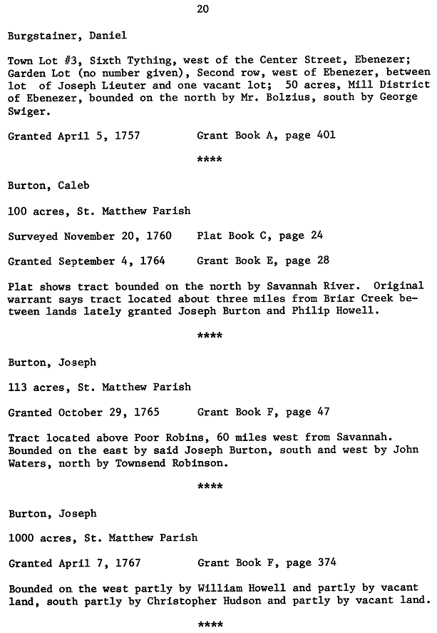 English Crown Grants in St. Matthew Parish in Georgia, 1755 - 1775