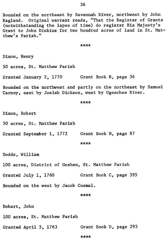 English Crown Grants in St. Matthew Parish in Georgia, 1755 - 1775