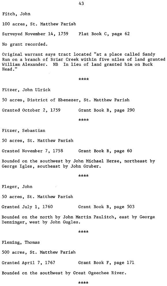 English Crown Grants in St. Matthew Parish in Georgia, 1755 - 1775