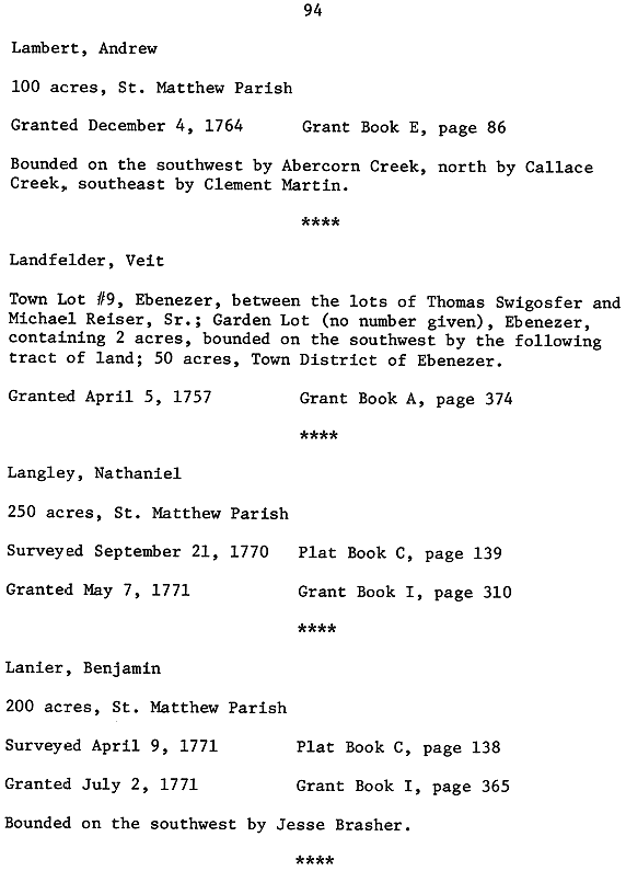 English Crown Grants in St. Matthew Parish in Georgia, 1755 - 1775