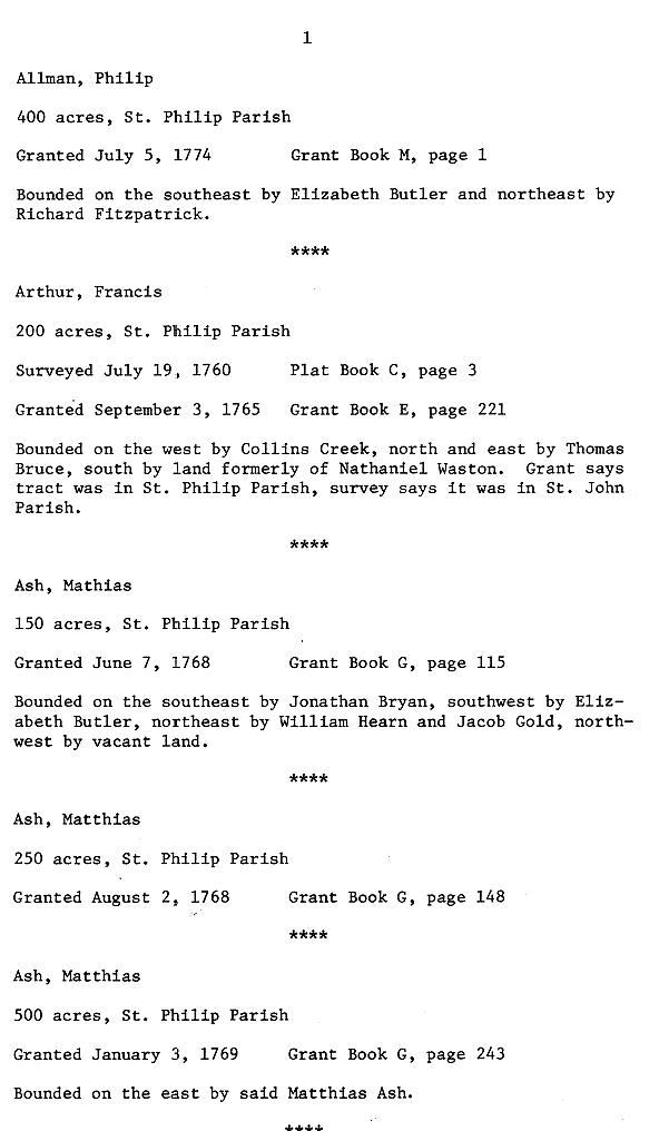 English Crown Grants in St. Philip Parish in Georgia, 1755 - 1775