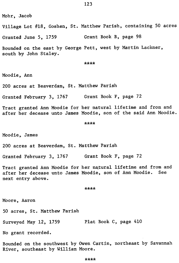 English Crown Grants in St. Matthew Parish in Georgia, 1755 - 1775