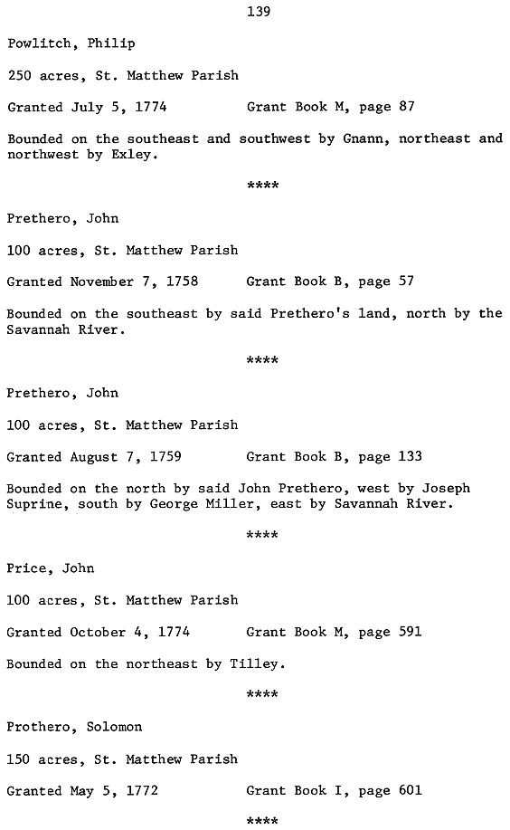 English Crown Grants in St. Matthew Parish in Georgia, 1755 - 1775