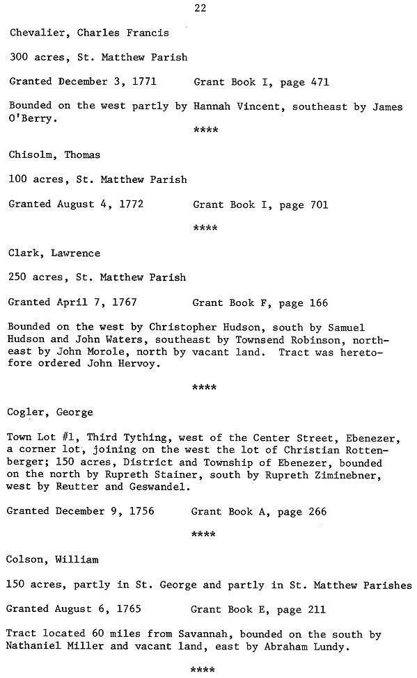 English Crown Grants in St. Matthew Parish in Georgia, 1755 - 1775