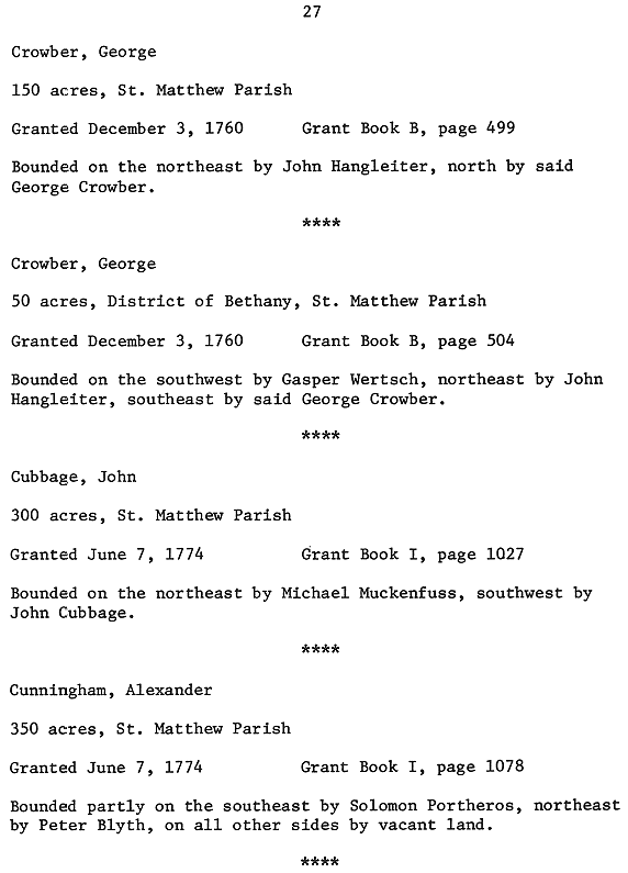 English Crown Grants in St. Matthew Parish in Georgia, 1755 - 1775