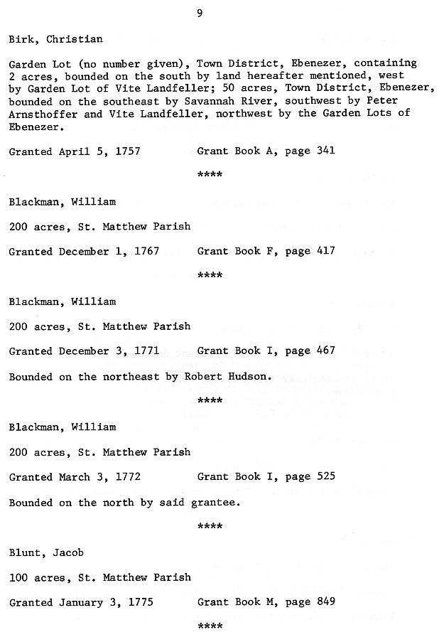 English Crown Grants in St. Matthew Parish in Georgia, 1755 - 1775