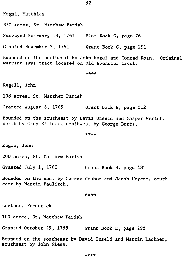 English Crown Grants in St. Matthew Parish in Georgia, 1755 - 1775
