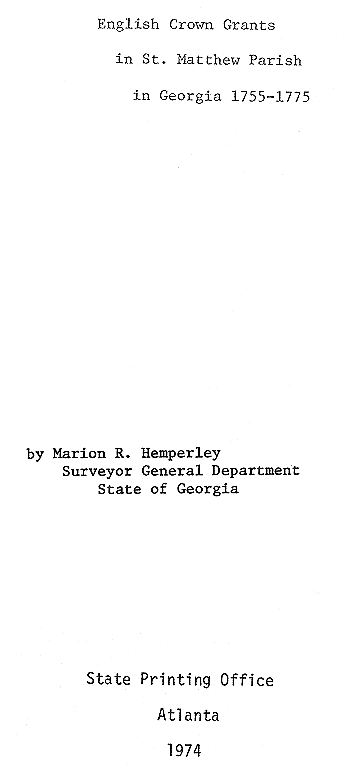 English Crown Grants in St. Matthew Parish in Georgia, 1755 - 1775