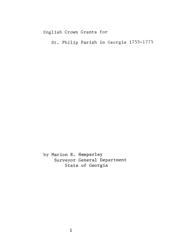 English Crown Grants in St. Philip Parish in Georgia, 1755 - 1775